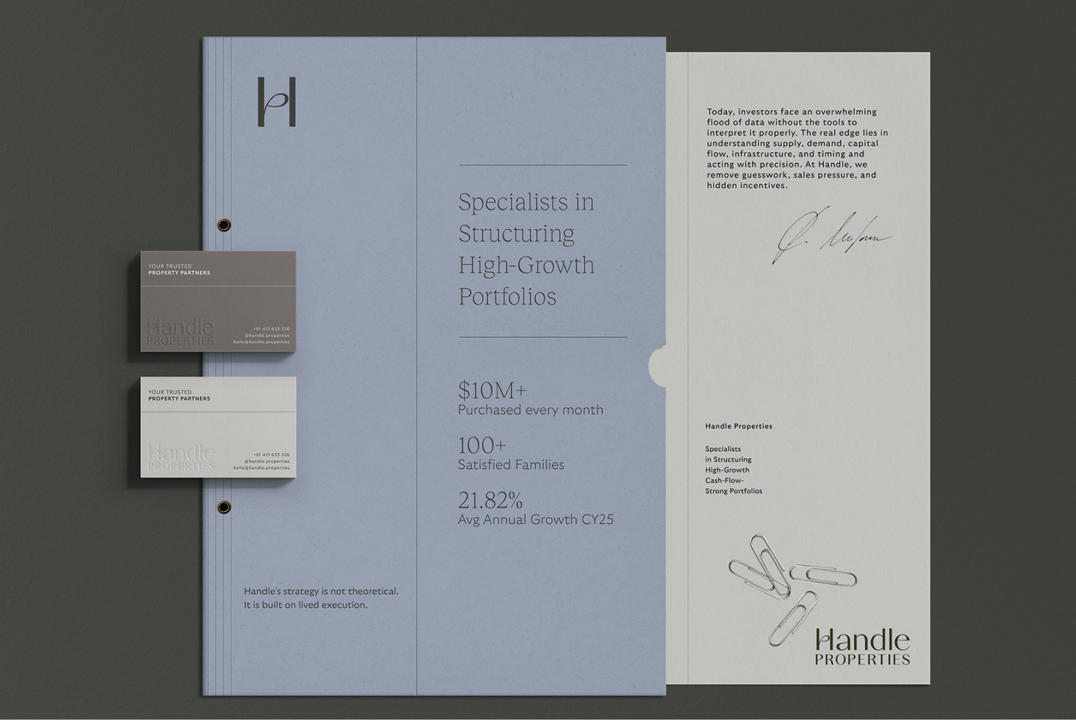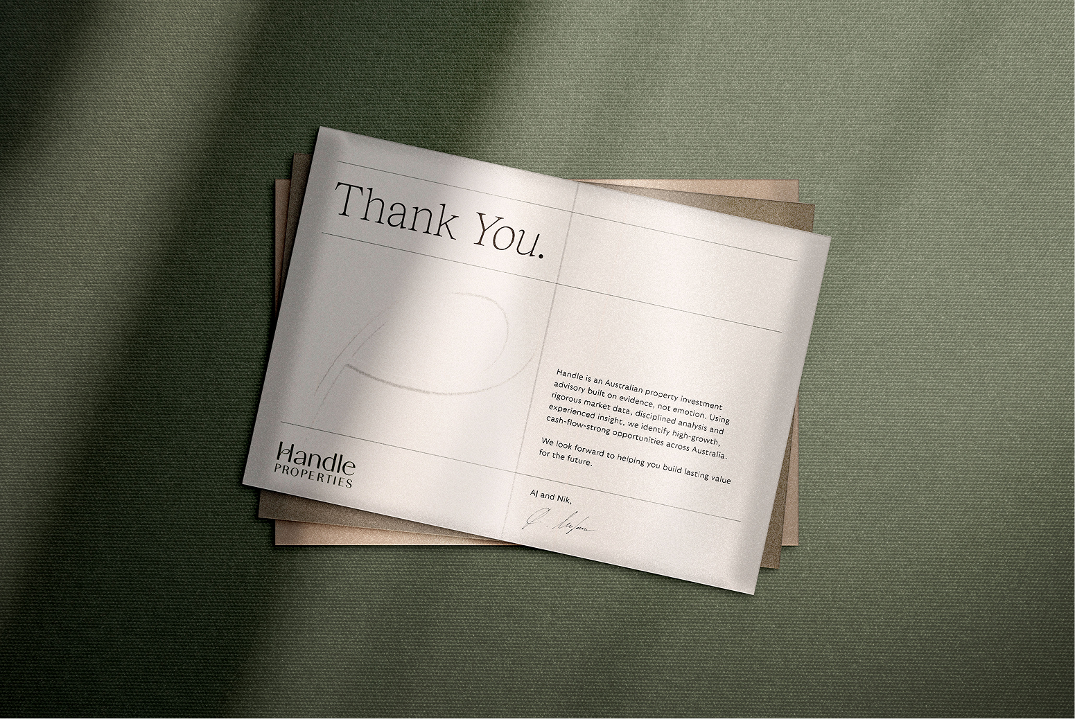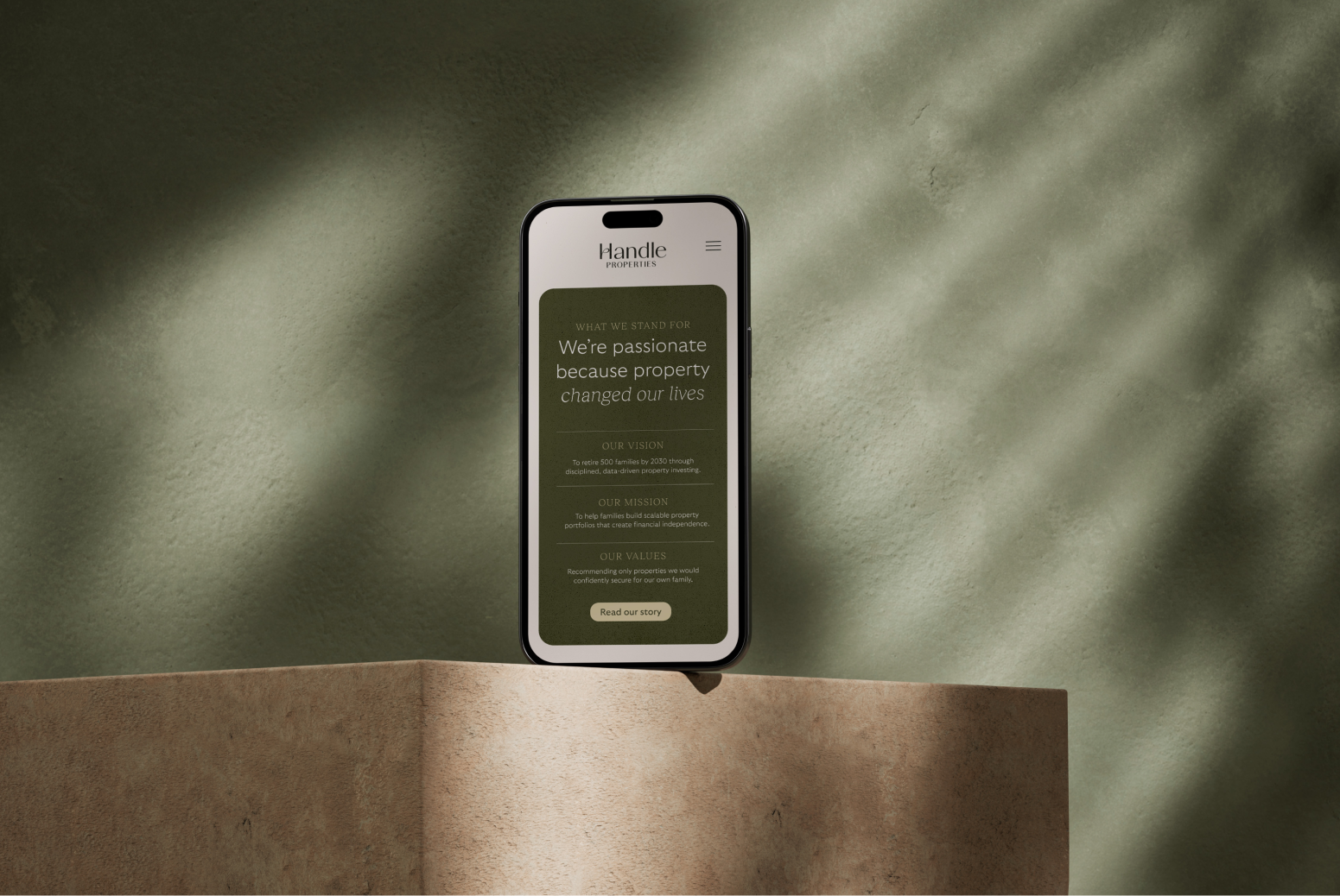 Through a focused strategic and creative process, we shaped a cohesive brand identity and website experience that reflected the values at the core of Handle — integrity, refinement and clarity. The visual language balances architectural precision with warmth, positioning the brand as a developer creating spaces designed not just to be built, but to be lived in.